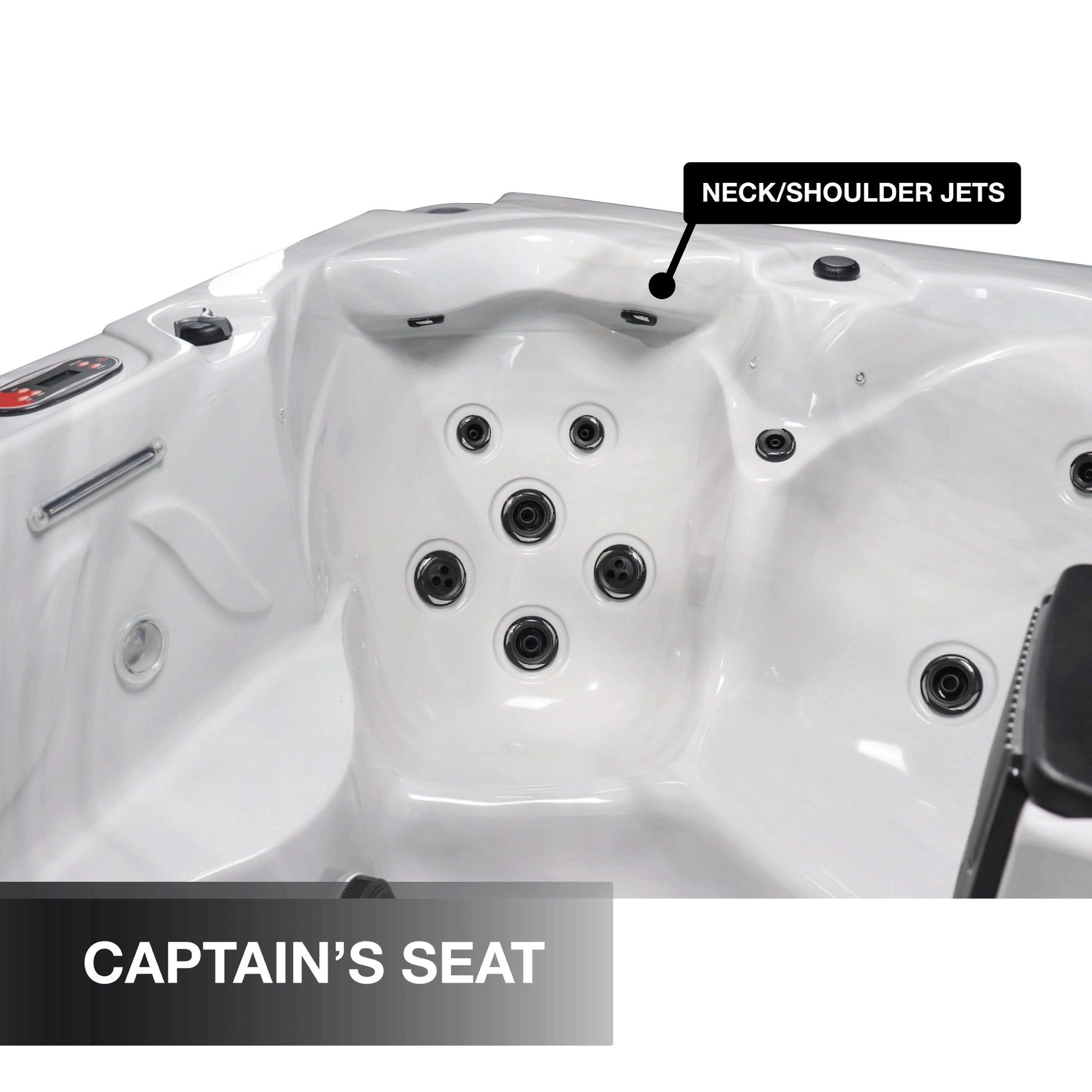 Das extra große Overlay-Pad des fortschrittlichen digitalen Balboa-Bedienfelds macht die Bedienung Ihres Whirlpools zu einem Traum - mit einem einfachen Tastendruck lassen sich Düsen, Pumpen und Temperatur einstellen, um eine zuverlässige und schnelle Leistung zu gewährleisten.