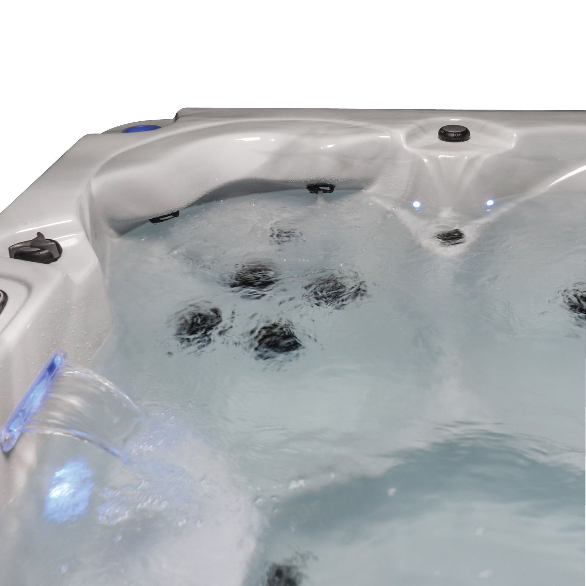 Das Aurora™ Premium LED-Stimmungsbeleuchtungssystem bietet die volle Kontrolle über das mehrfarbige Beleuchtungssystem im Whirlpool - einschließlich der Lichter am Rand, der großen Unterwasser-LEDs und des wunderschönen LED-hinterleuchteten Wasserfalls.