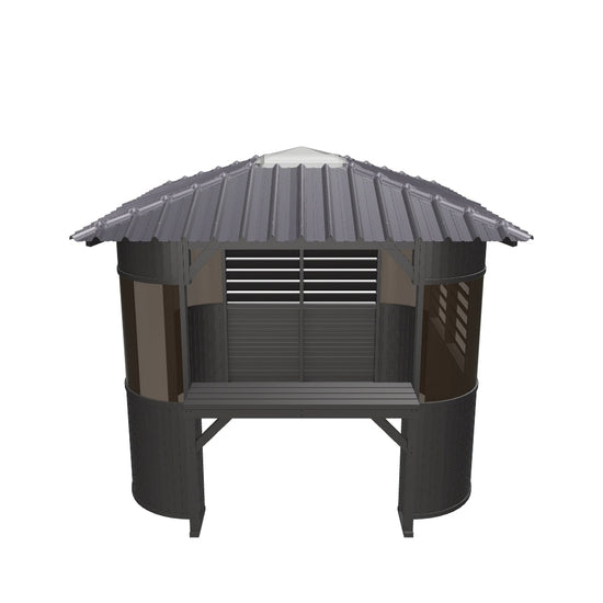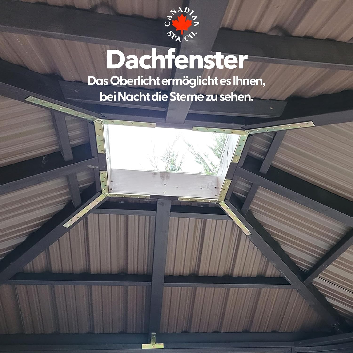 CANADIAN SPA CO. Fraser freistehender Pool Pavillon in Braun, Whirlpool Pavillion mit Bar, Lamellenfenster und Dachfenster